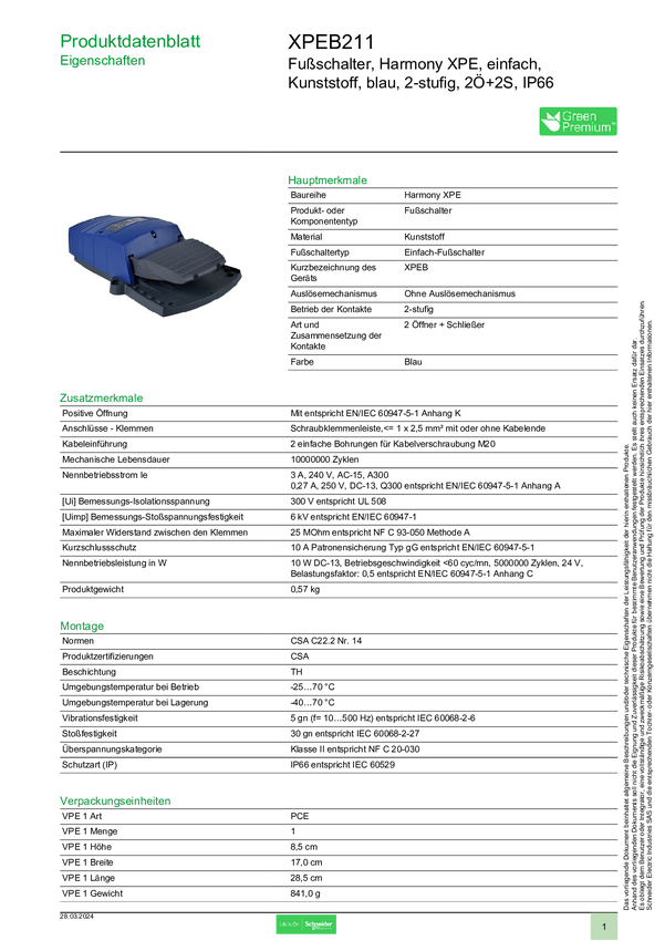 Schneider Electric XPEB211 Przełącznik nożny, 1 szt.