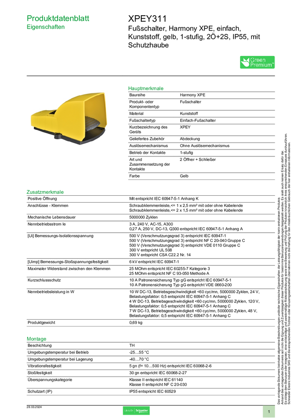 XPEY311 Schneider Electric XPEY311 Przełącznik nożny, 1 szt.