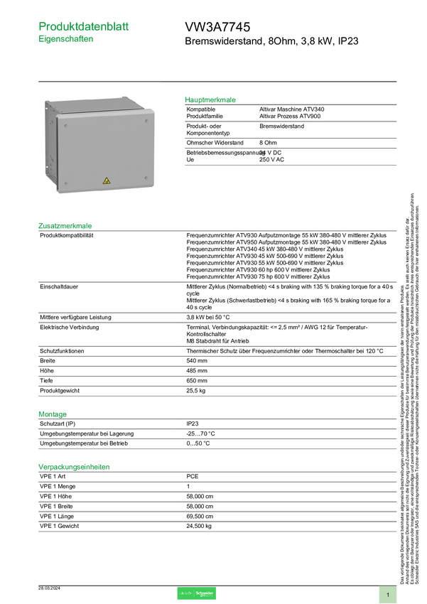VW3A7745 Schneider Electric VW3A7745 VW3A7745 Rezystor hamujący 1 szt.