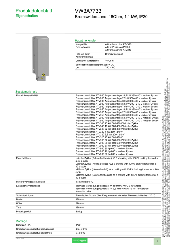 VW3A7733 Schneider Electric VW3A7733 VW3A7733 Rezystor hamujący 1 szt.