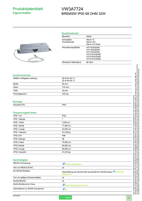Schneider Electric VW3A7724 Akcesorium do wyłącznika mocy 1 szt.