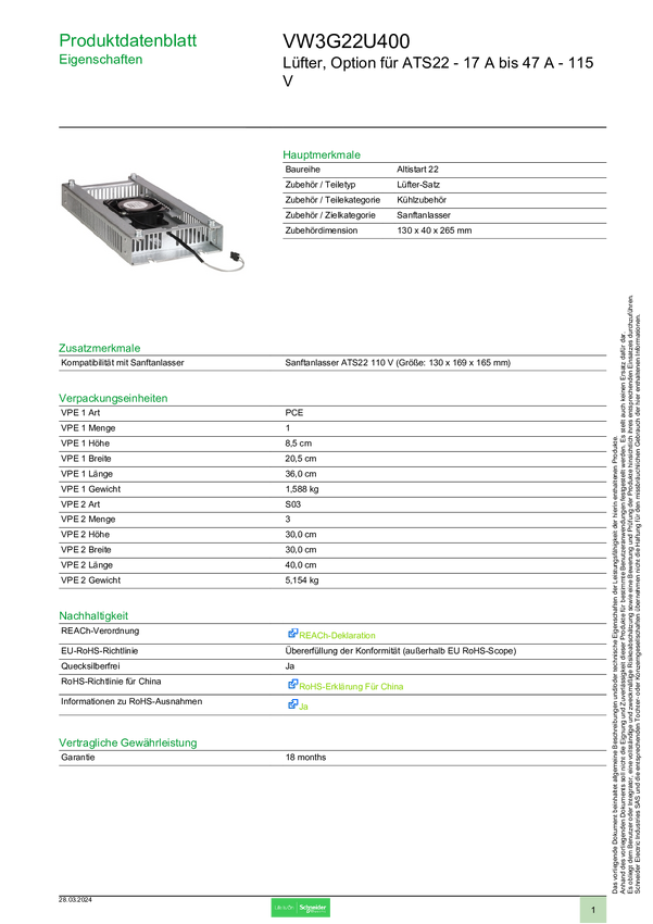 Schneider Electric VW3G22U400 Akcesorium do wyłącznika mocy 1 szt.