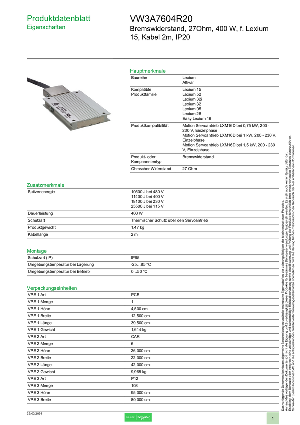 VW3A7604R20 Schneider Electric VW3A7604R20 Rezystor hamujący 1 szt.