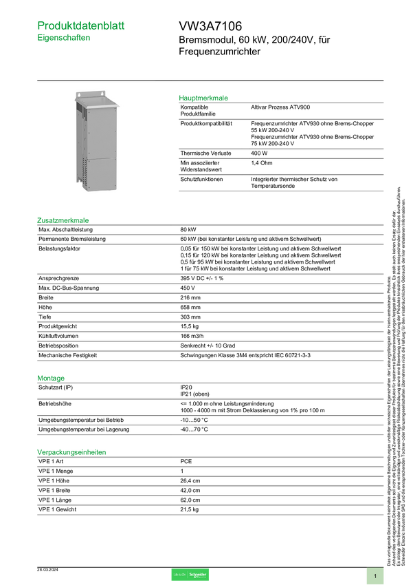 VW3A7106 Schneider Electric VW3A7106 VW3A7106 Akcesorium do wyłącznika mocy 1 szt.