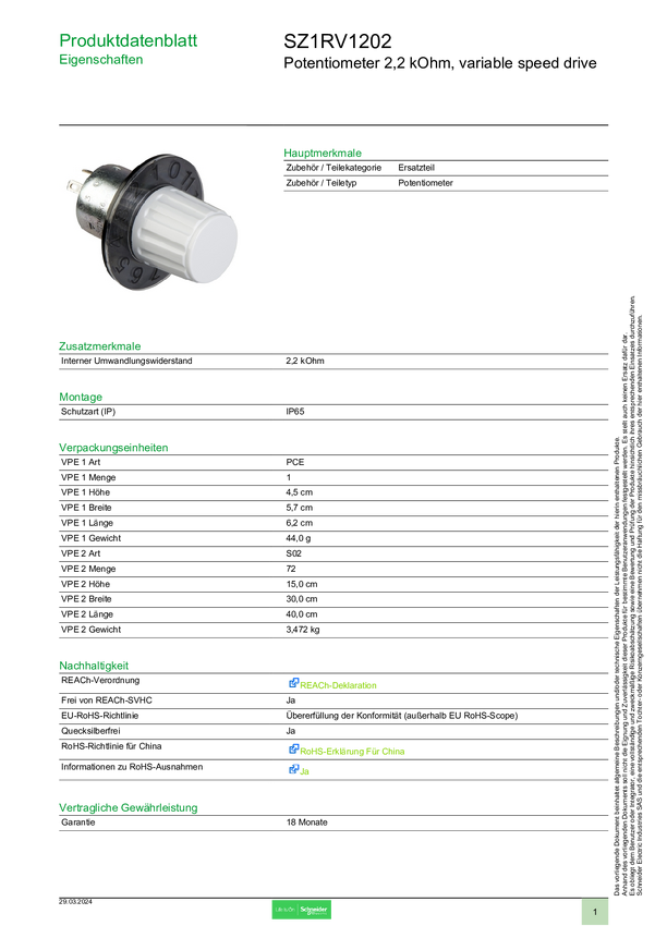 Schneider Electric SZ1RV1202 Akcesorium do wyłącznika mocy 1 szt.