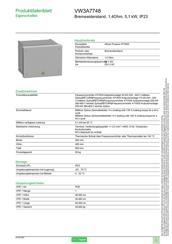 VW3A7748 Schneider Electric VW3A7748 VW3A7748 Rezystor hamujący 1 szt.