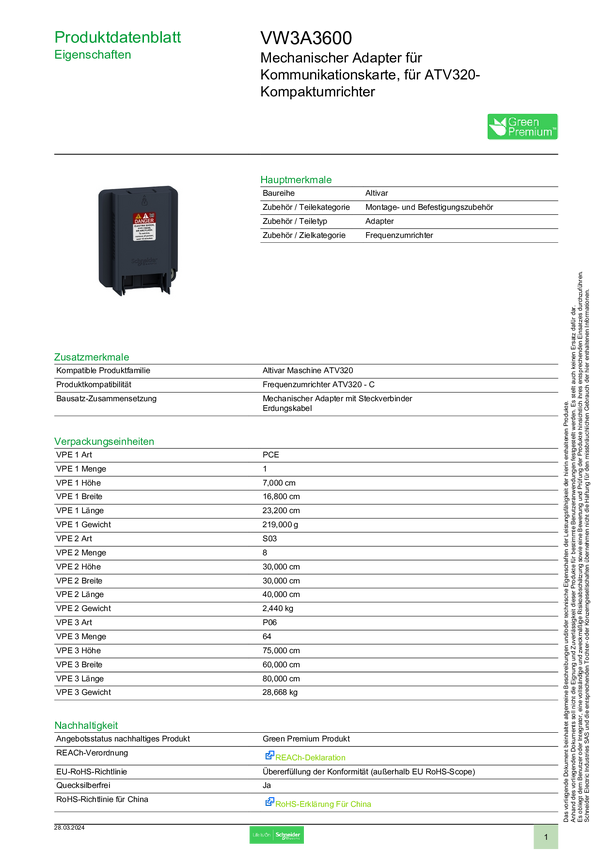 Schneider Electric VW3A3600 Akcesorium do wyłącznika mocy 1 szt.
