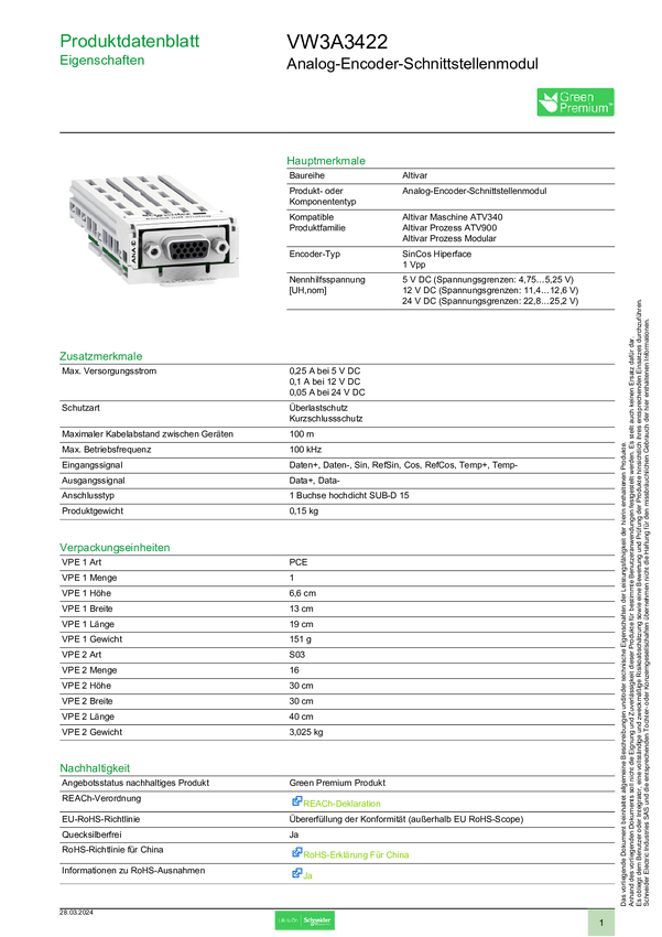 VW3A3422 Schneider Electric VW3A3422 Akcesorium do wyłącznika mocy 1 szt.