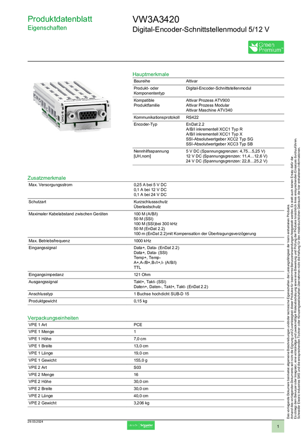 VW3A3420 Schneider Electric VW3A3420 Akcesorium do wyłącznika mocy 1 szt.