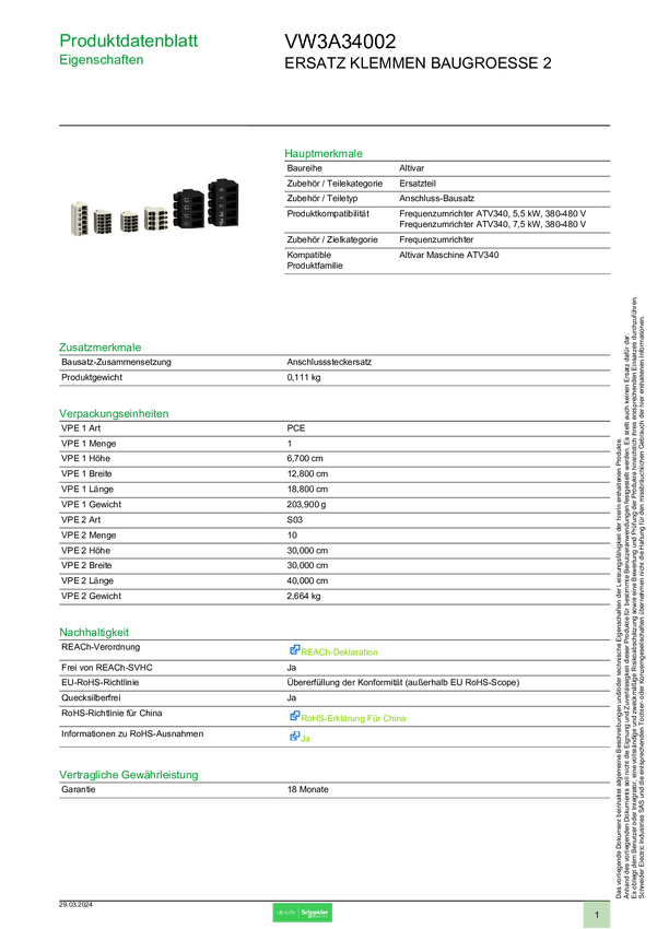 VW3A34002 Schneider Electric VW3A34002 Akcesorium do wyłącznika mocy 1 szt.