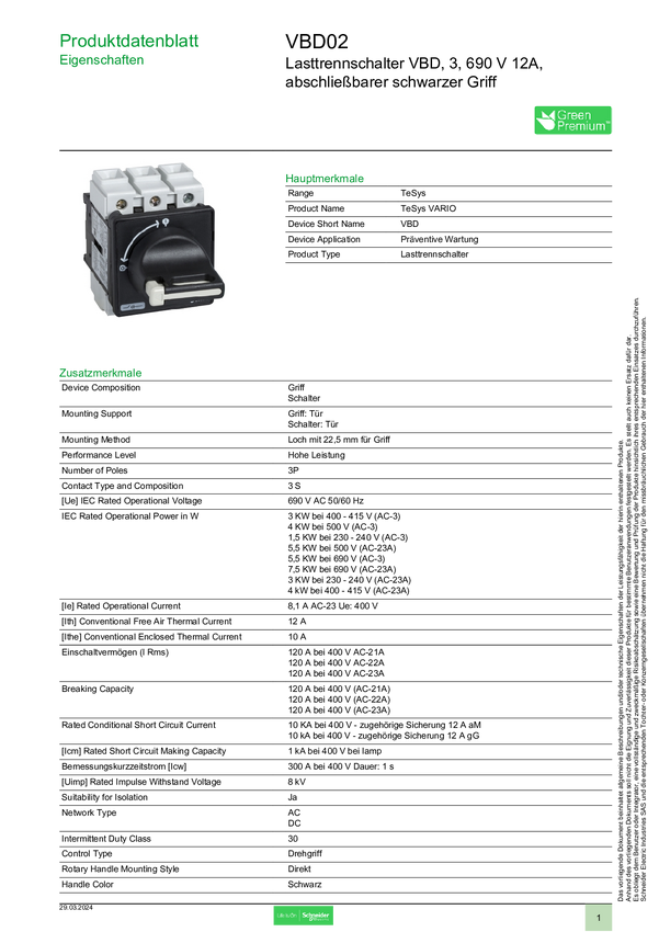 VBD02 Schneider Electric VBD02 Rozłącznik 1 szt.