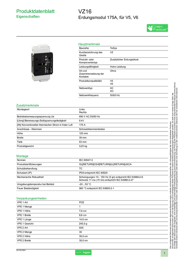 VZ16 Schneider Electric VZ16 Akcesorium do wyłącznika mocy 1 szt.