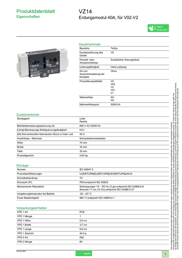 VZ14 Schneider Electric VZ14 Akcesorium do wyłącznika mocy 1 szt.