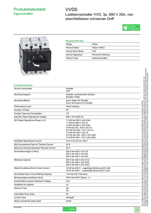 Schneider Electric VVD0 Rozłącznik 1 szt.