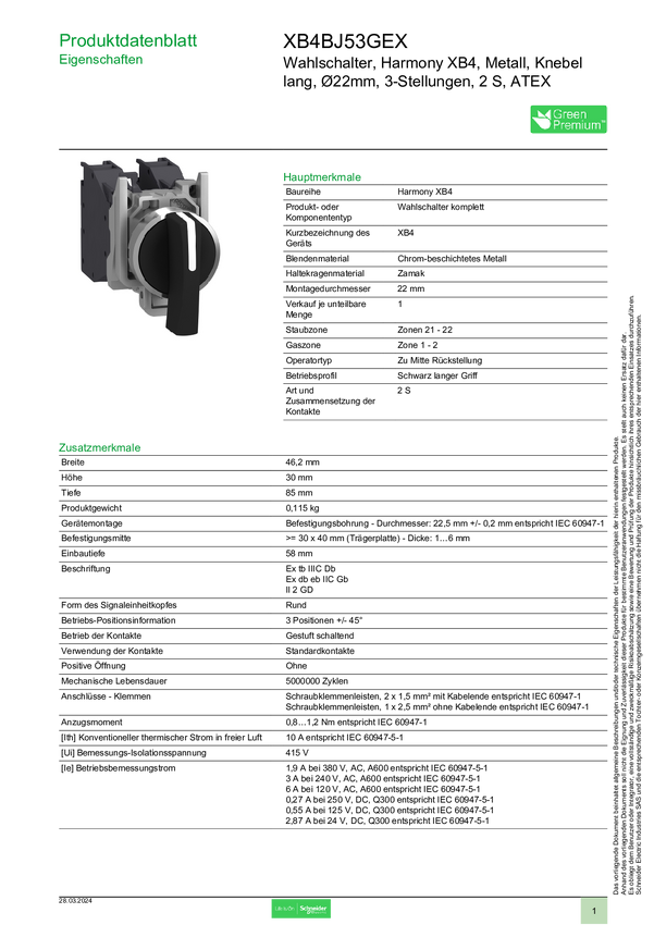 XB4BJ53GEX Schneider Electric XB4BJ53GEX Przełącznik wyboru 1 szt.