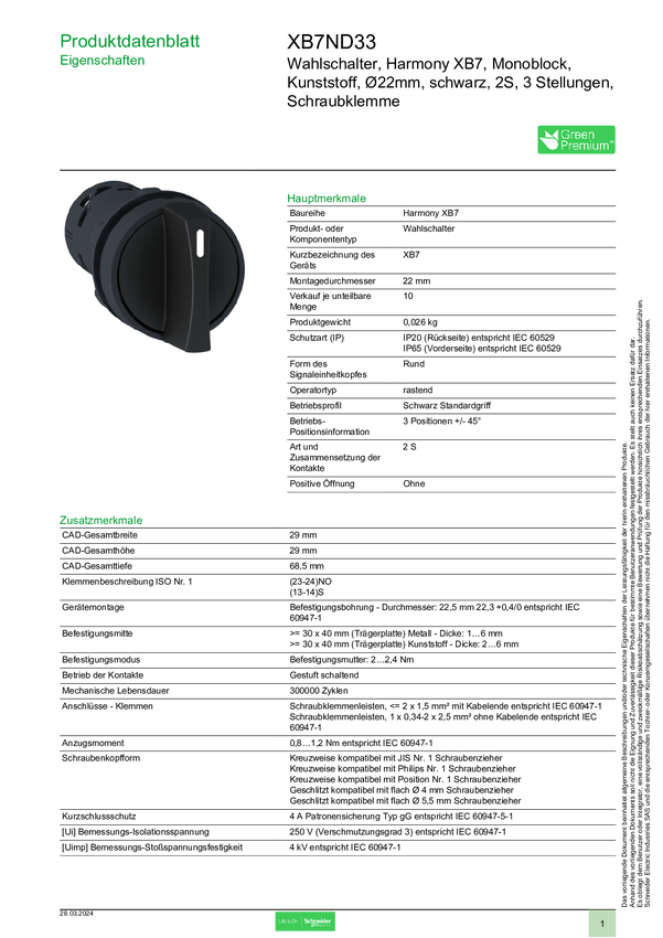 XB7ND33 Schneider Electric XB7ND33 Przełącznik wyboru 10 szt.