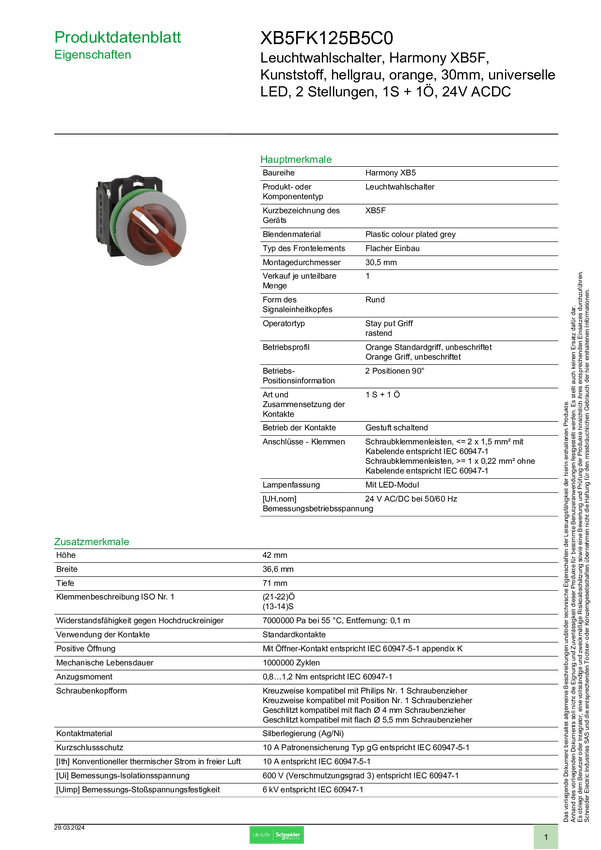 XB5FK125B5C0 Schneider Electric XB5FK125B5C0 Podświetlany przełącznik wyboru 1 szt.