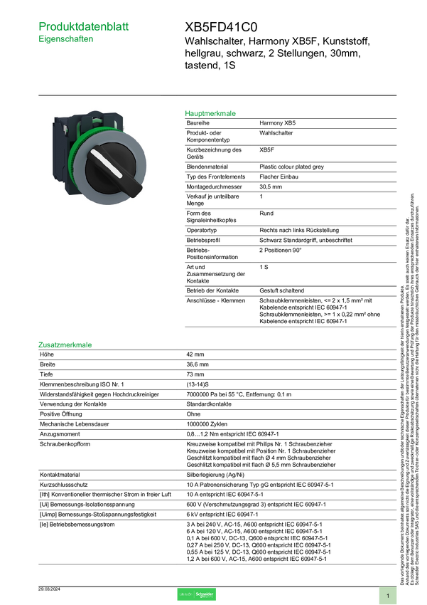 XB5FD41C0 Schneider Electric XB5FD41C0 Przełącznik wyboru 1 szt.