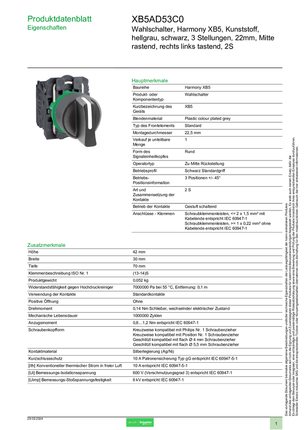 XB5AD53C0 Schneider Electric XB5AD53C0 Przełącznik wyboru 1 szt.