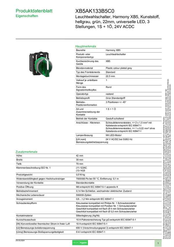 XB5AK133B5C0 Schneider Electric XB5AK133B5C0 Podświetlany przełącznik wyboru 1 szt.