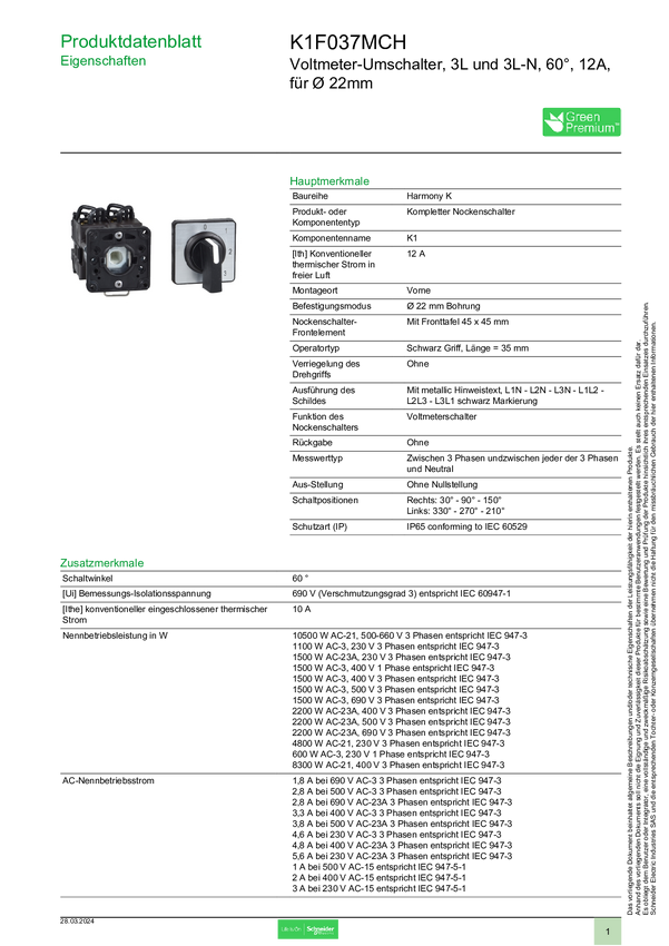 K1F037MCH Schneider Electric K1F037MCH Przełącznik woltomierza 1 szt.