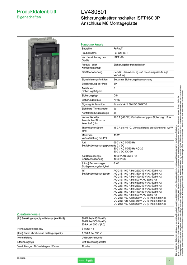 LV480801 Schneider Electric LV480801 Rozłącznik