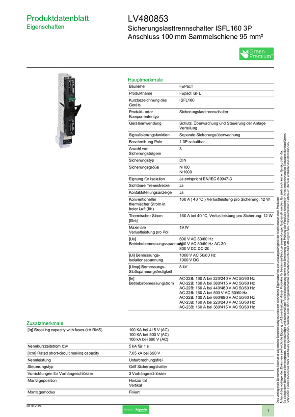 Schneider Electric LV480853 Rozłącznik przełączający bezpiecznikowy 1 szt.