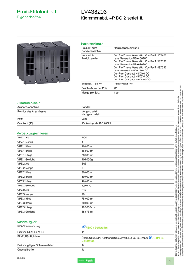 LV438293 Schneider Electric LV438293 LV438293 Akcesorium do wyłącznika mocy 1 szt.