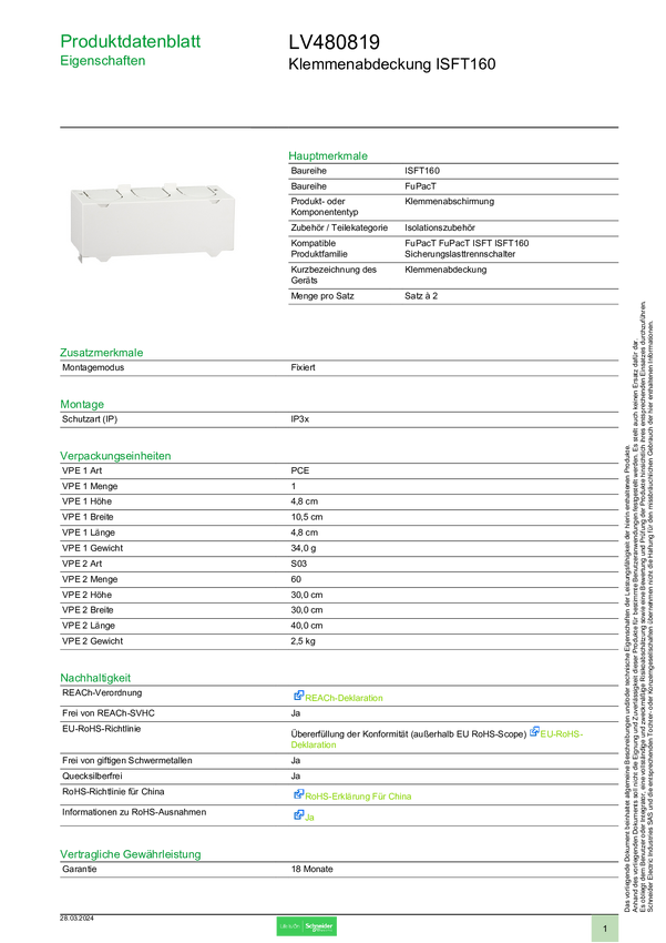 LV480819 Schneider Electric LV480819 Akcesorium do wyłącznika mocy 1 szt.