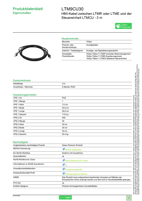 LTM9CU30 Schneider Electric LTM9CU30 LTM9CU30 Akcesorium do wyłącznika mocy 1 szt.