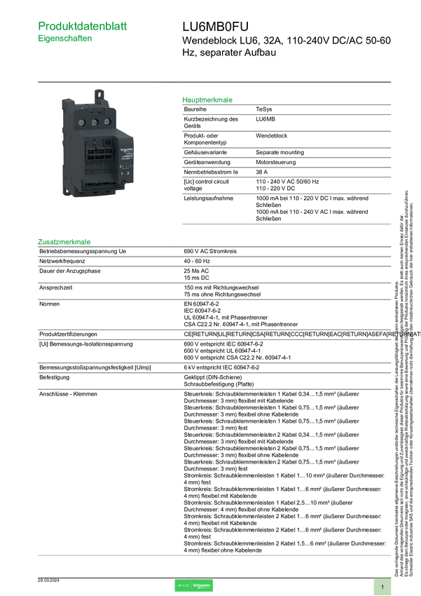 LU6MB0FU Schneider Electric LU6MB0FU LU6MB0FU Akcesorium do wyłącznika mocy 1 szt.