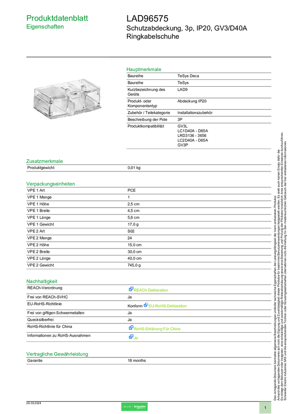 Schneider Electric LAD96575 Akcesorium do wyłącznika mocy 1 szt.