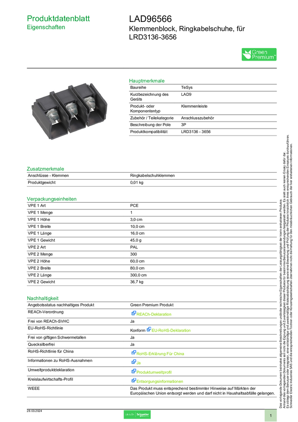 Schneider Electric LAD96566 Akcesorium do wyłącznika mocy 1 szt.
