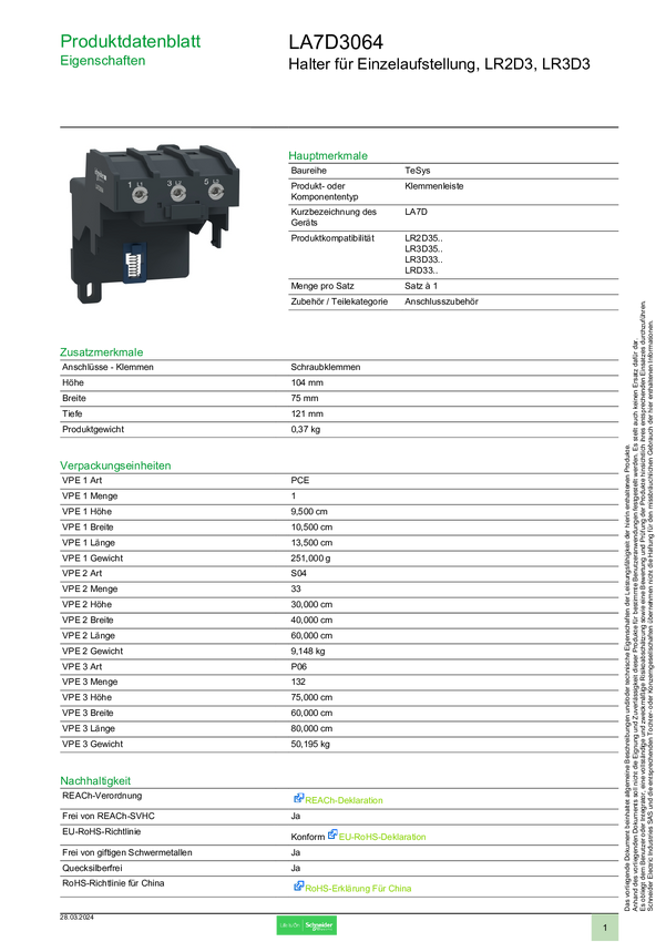 LA7D3064 Schneider Electric LA7D3064 Akcesorium do wyłącznika mocy 1 szt.