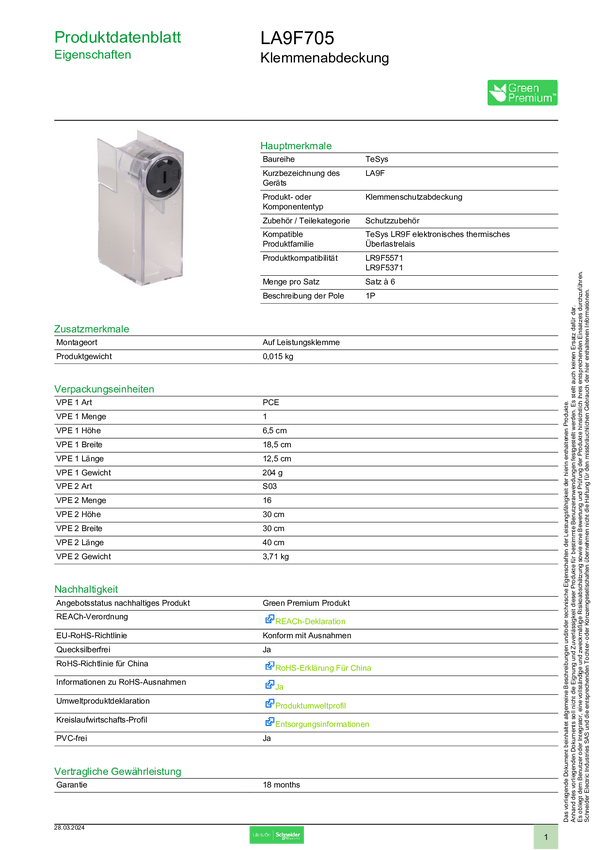 LA9F705 Schneider Electric LA9F705 Akcesorium do wyłącznika mocy 1 szt.