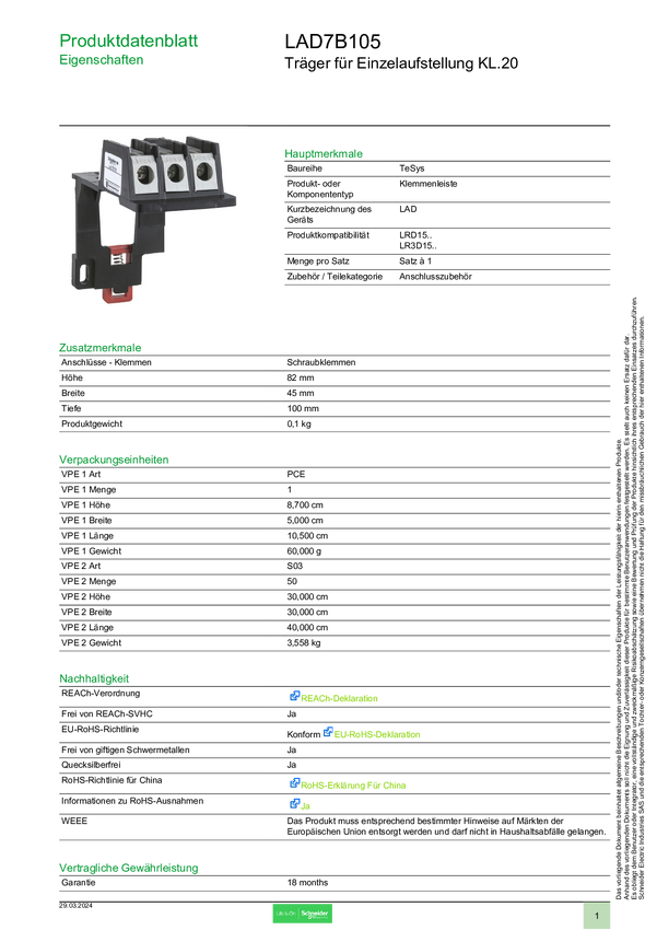 Schneider Electric LAD7B105 Akcesorium do wyłącznika mocy 1 szt.