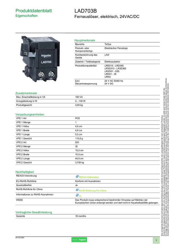 LAD703B Schneider Electric LAD703B Akcesorium do wyłącznika mocy 1 szt.