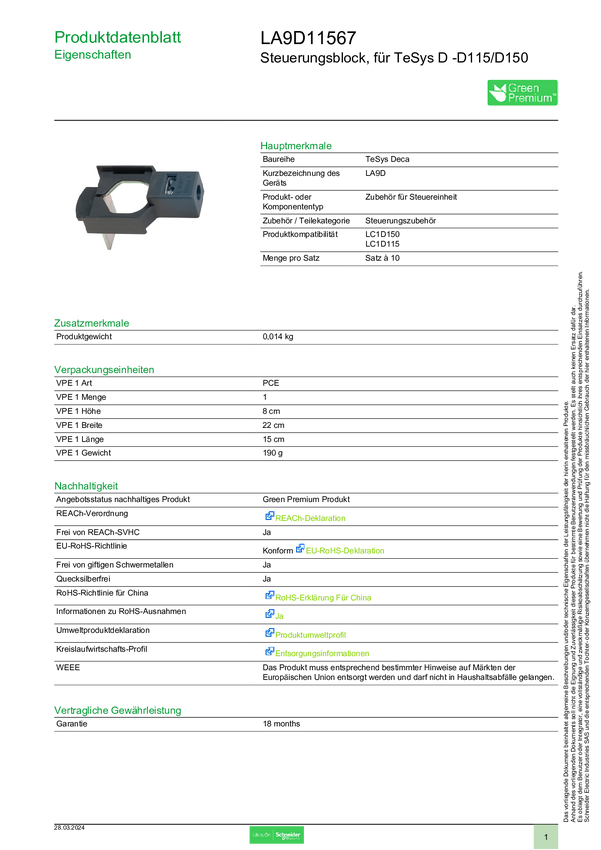 Schneider Electric LA9D11567 LA9D11567 Akcesorium do wyłącznika mocy 1 szt.
