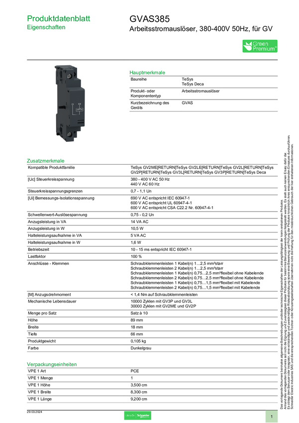 GVAS385 Schneider Electric GVAS385 Wyzwalacz napięciowy 1 szt.