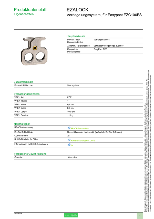EZALOCK Schneider Electric EZALOCK EZALOCK Blokada 1 szt.