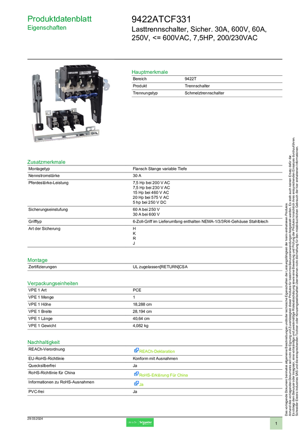 9422ATCF331 Schneider Electric 9422ATCF331 Rozłącznik 9422ATCF331