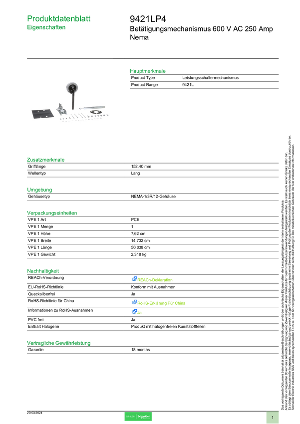 Schneider Electric 9421LP4 Akcesorium do wyłącznika mocy 1 szt.