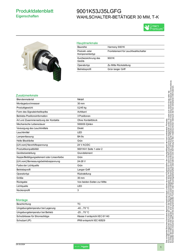 Schneider Electric 9001K53J35LGFG Przełącznik wyboru, przedni element 1 szt.