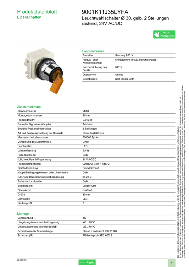 9001K11J35LYFA Schneider Electric 9001K11J35LYFA Podświetlany przełącznik wyboru 1 szt.