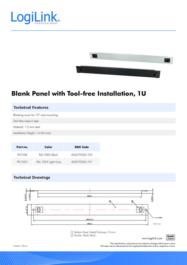PN105G Płyta zaślepiająca LogiLink PN105G PN105G, 1 szt.