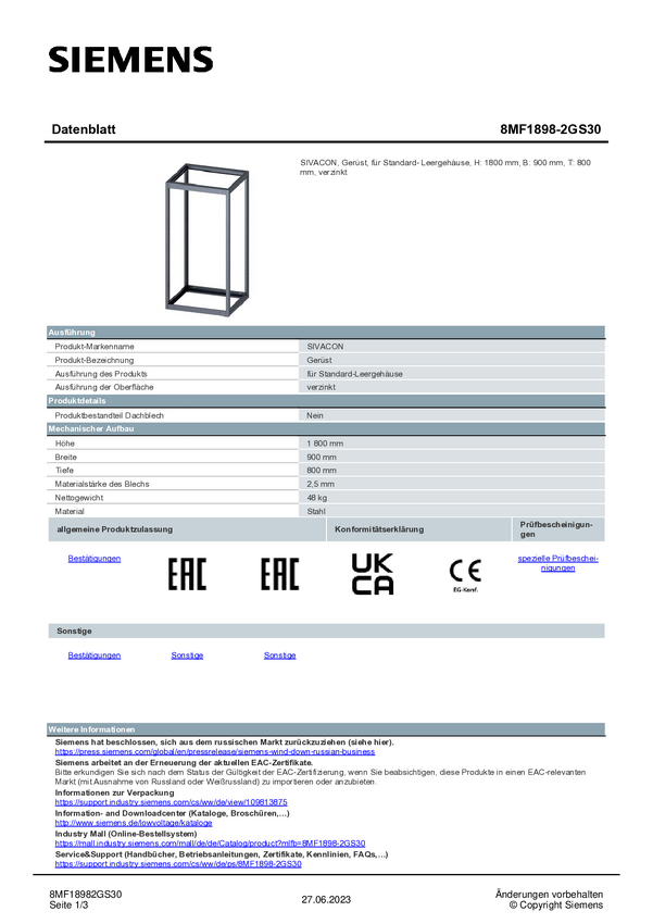 Rusztowanie Siemens 8MF1898-2GS30 1 szt.