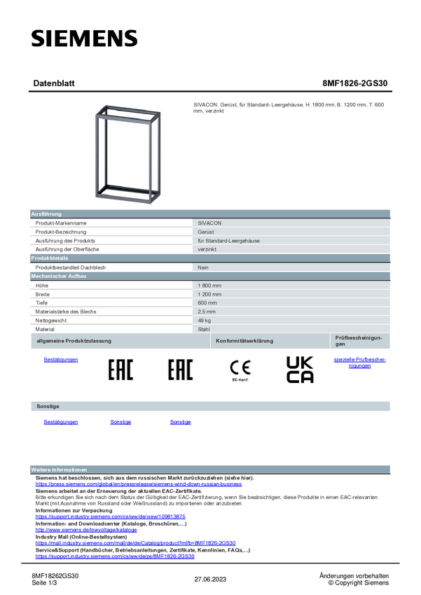 8MF18262GS30 Rusztowanie Siemens 8MF1826-2GS30 1 szt.