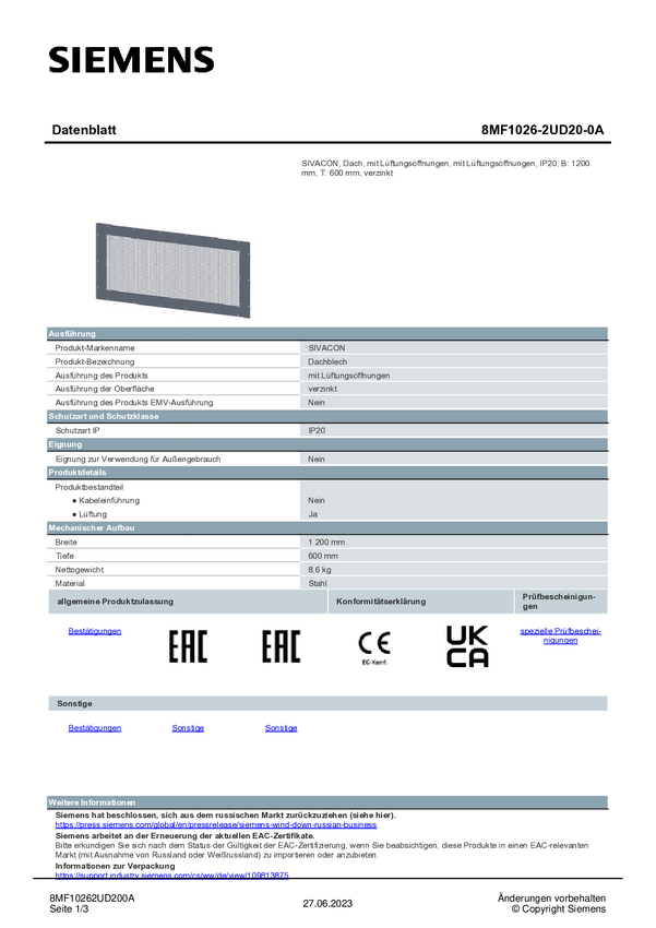 Dach Siemens 8MF1026-2UD20-0A 1 szt.