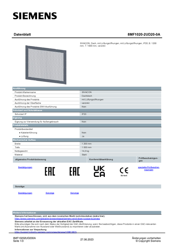 Dach Siemens 8MF1020-2UD20-0A 1 szt.