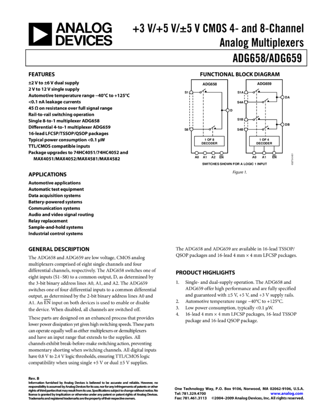 ADG659: 3V/5V ± 5V CMOS 4/8 Channel Analog Multiplexers